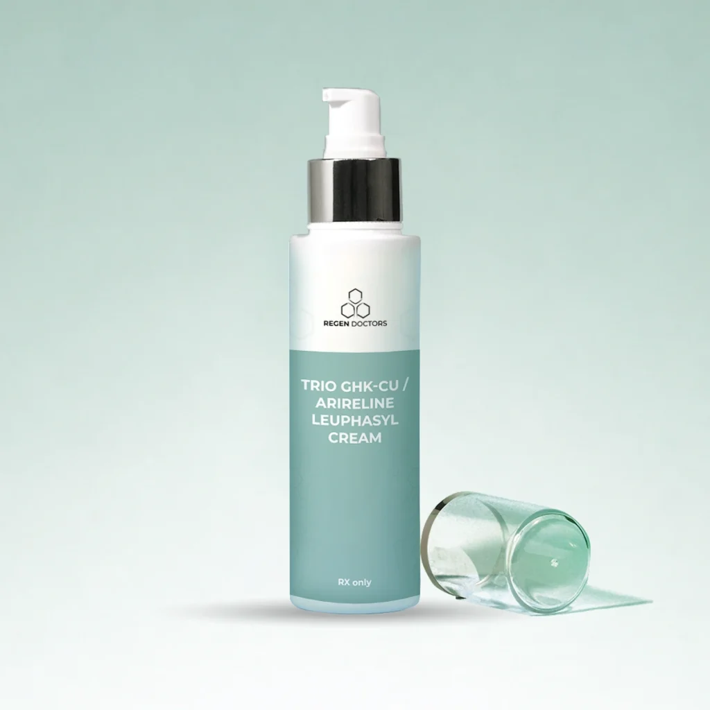 Experience the remarkable power of our Trio Cream (GHK-Cu/Argireline/Leuphasyl), designed to help you achieve younger-looking, revitalized skin. This advanced cosmetic harnesses the synergistic effect of a non-toxic peptide combination that offers results similar to Botox, while providing additional benefits for your skin.